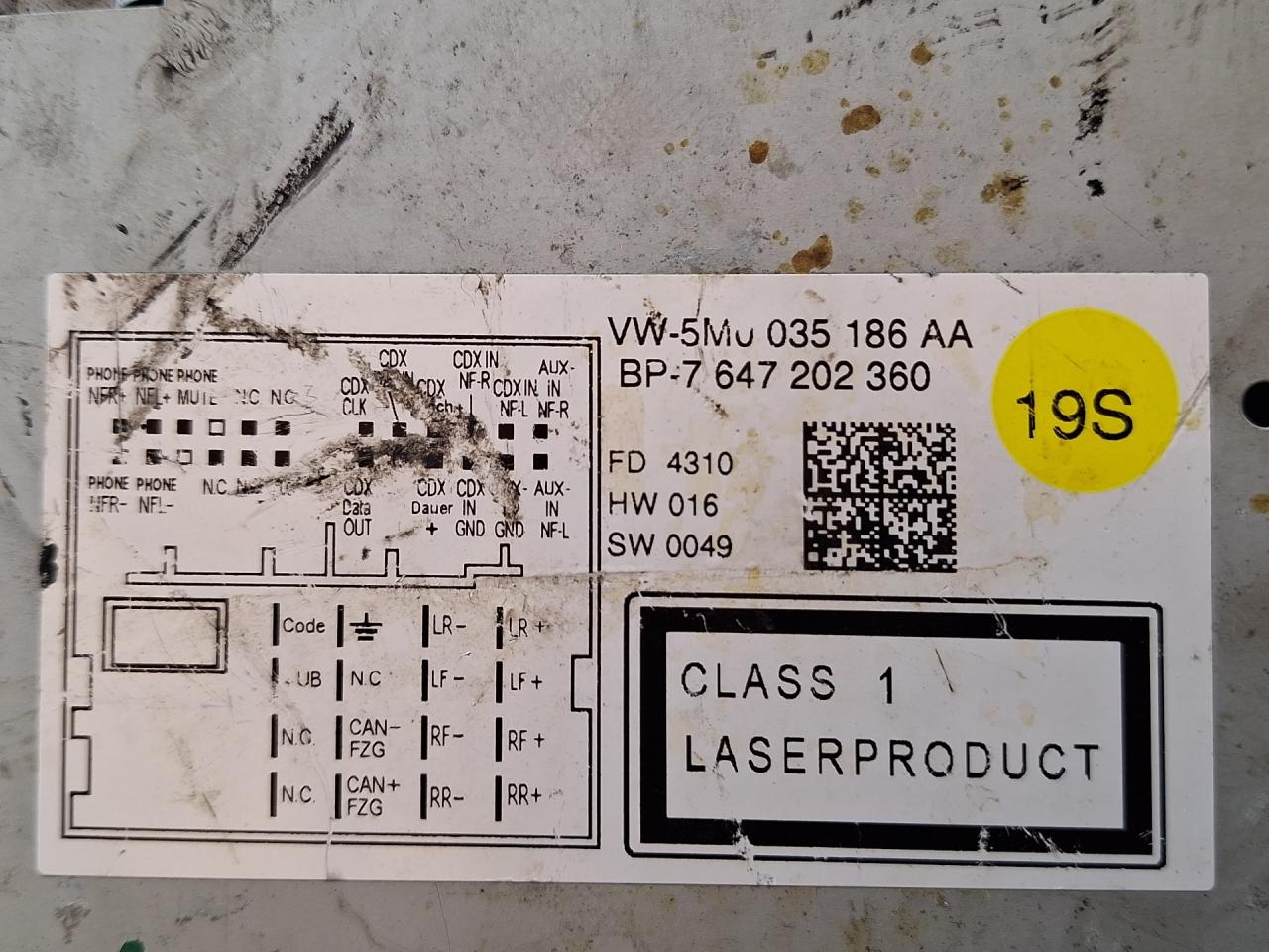| Номер запчасти | 5M0035186AA, 7647202360 |