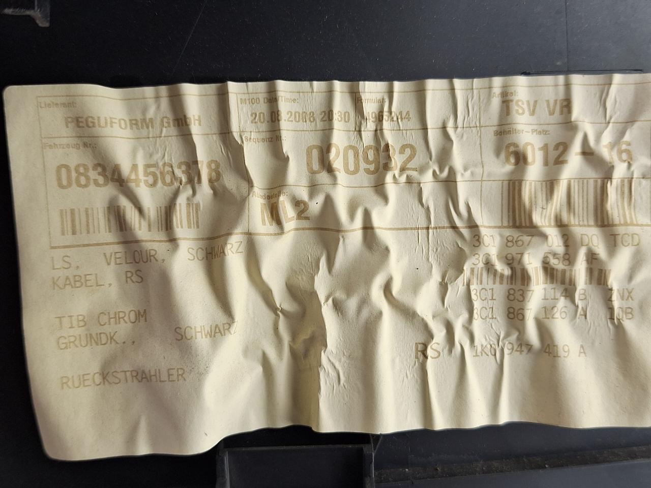 | Номер запчасти | 0834456378, 3C1867012 |